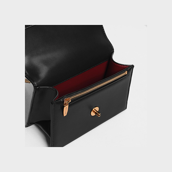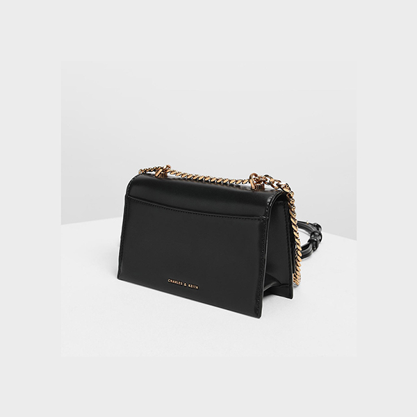 CHARLES & KEITH CHAIN & STRAP PUSH LOCK SHOULDER BAG (BLACK)