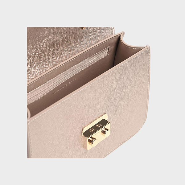 CHARLES & KEITH EMBELLISHED PUSH LOCK CLUTCH (ROSE GOLD)
