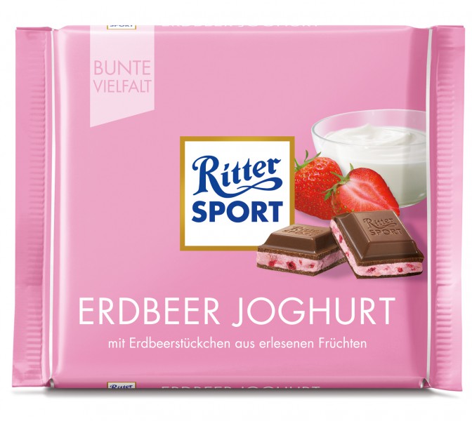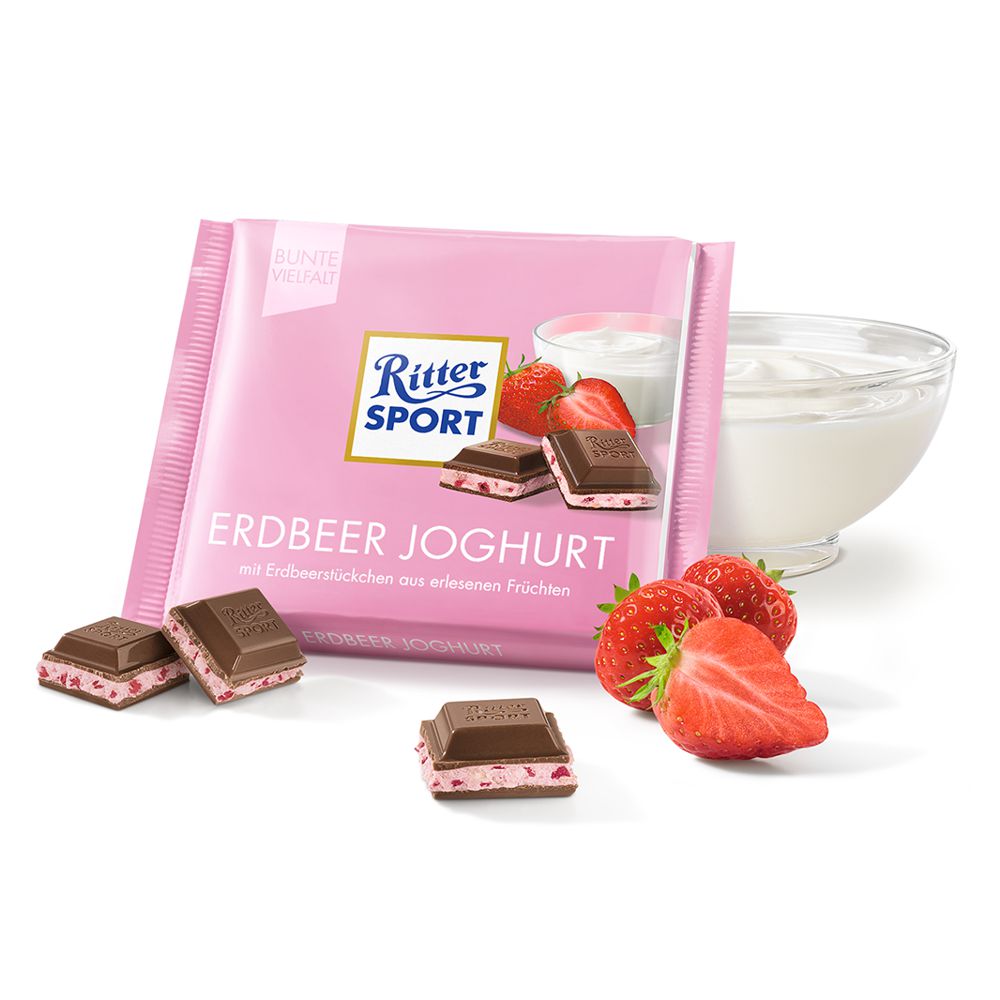 It's summer all year round with the RITTER SPORT Strawberry Yogurt bar. Plenty of real fruit pieces, strawberry yogurt mousse and crunchy rice crisps give every piece a sunny outlook. Take it from us: this square strawberry field will make you hot stuff.