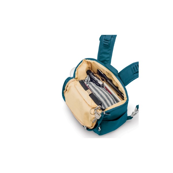 The tech savvy woman can enjoy peace of mind with this anti-theft compact backpack that fits an 11in laptop, has a smart rear zippered opening for extra protection and anti-theft features to protect your essentials.