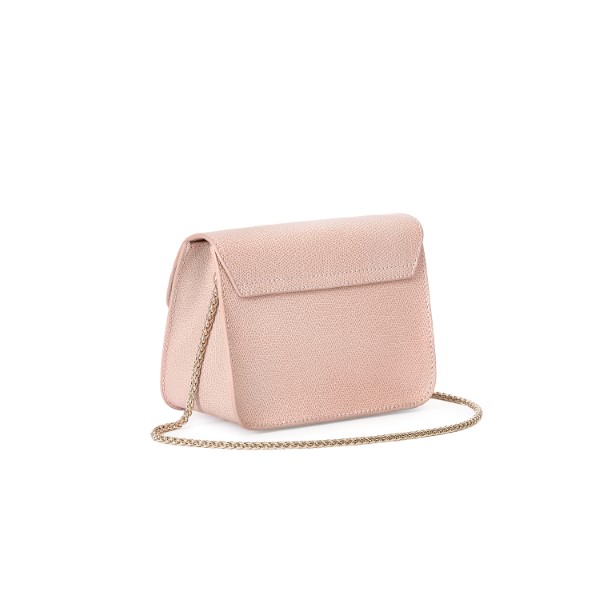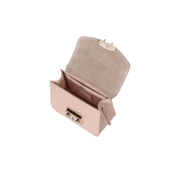 Furla signature crossbody bag in calfskin with removable shoulder strap in metal chain. One open pocket on the inside and metal feet to protect the bottom.