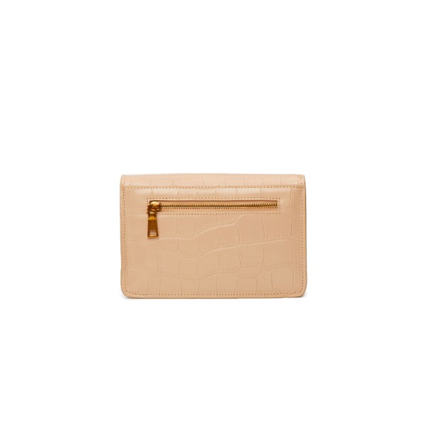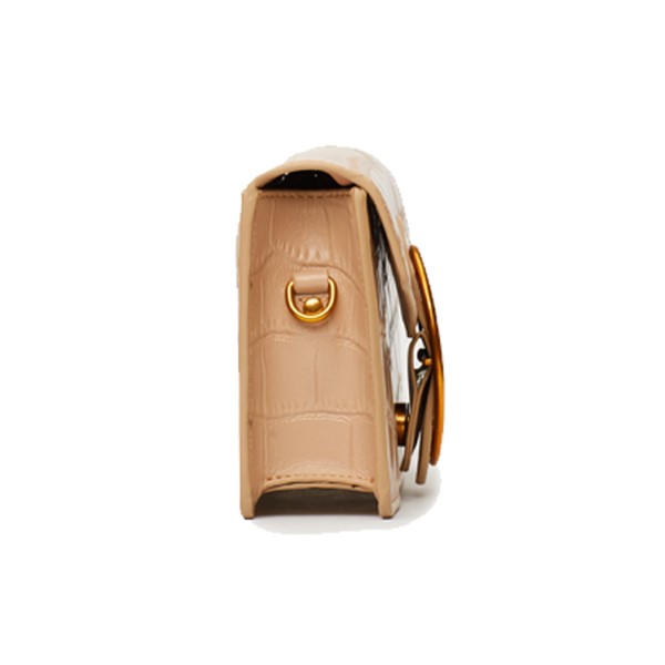 Crafted in calfskin embossed leather, this diminutive bag is designed for stowing the essentials, including a phone, coins and cards, and can be worn as a shoulder bag with the detachable strap, or carried as a clutch. Embellished with an oversized gold buckle, it’s perfect for a classy evening look.