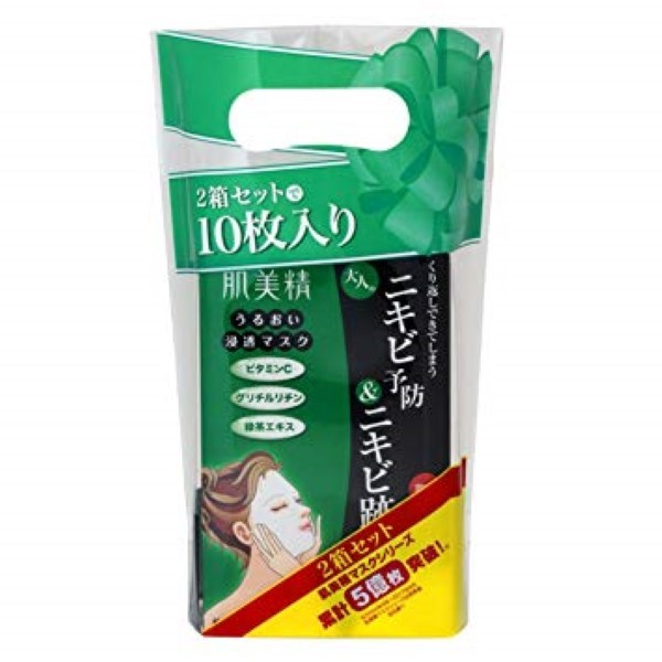 HADABISEI MOISTURE PENETRATION MASK ACNE Kracie肌美精绿茶VC面膜 祛痘控油补水淡印5片