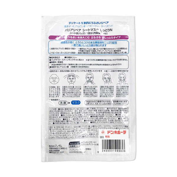 BARRIER REPAIR SHEET MASK BUTTERFLY MOIST 5 MAI 曼丹 婴儿肌深层滋润面膜 5枚