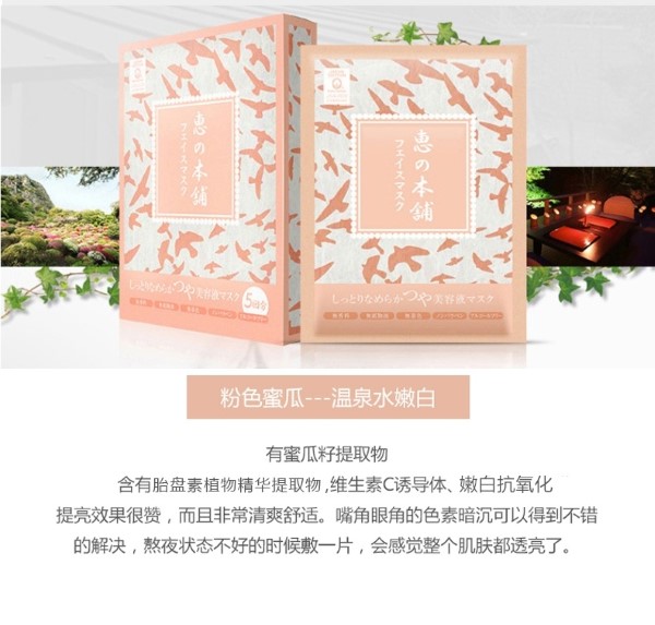 惠之本铺无添加温泉水保湿嫩白面膜 粉色嫩白抗氧化 5片装