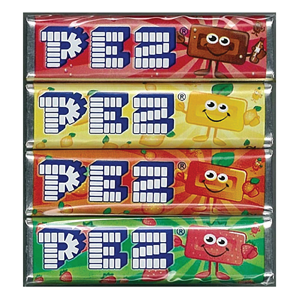 It is a refill of Pez that a lemon, an orange, cola, four taste of the strawberry were packed together.