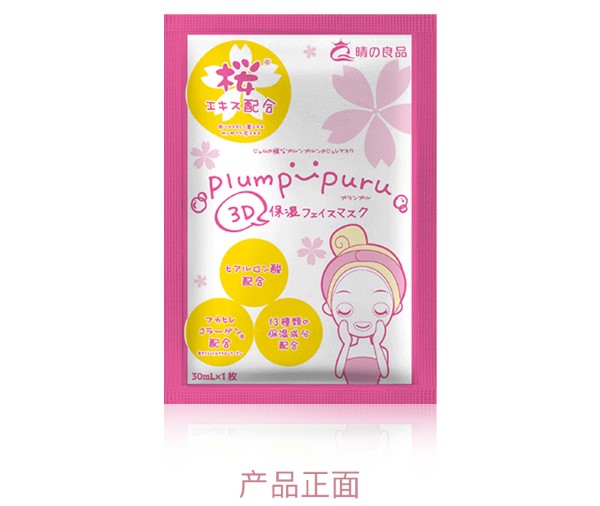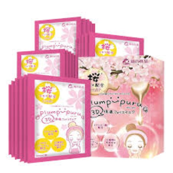 A new generation of good products PLUMP PURU 3D Cherry Blossom Mask, J-Jelly Jelly Mask like Jam, 3D design moisturizing whitening, inhibiting melanin, preventing aging and restoring skin elasticity. 30ml*4 pieces/box, rich in 13 kinds of moisturizing ingredients such as Yoshino cherry leaf extract, succinyl-endopeptide collagen, placenta royal jelly, combined with hyaluronic acid and collagen, to promote skin's return to soft elasticity and luster.