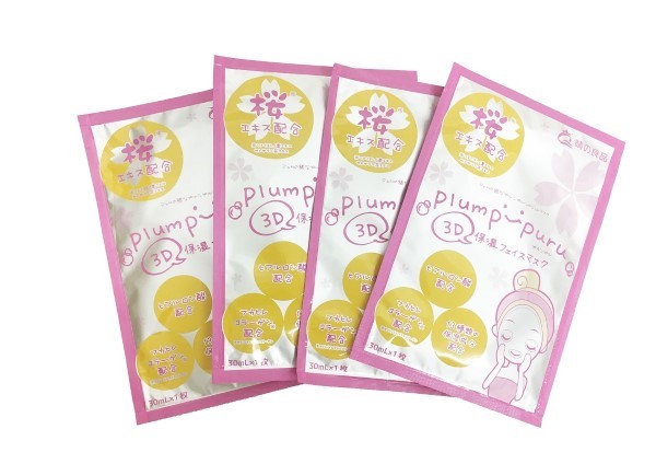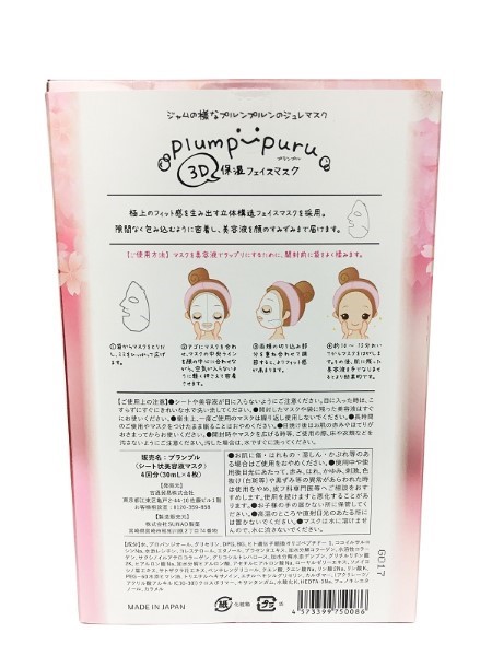 A new generation of good products PLUMP PURU 3D Cherry Blossom Mask, J-Jelly Jelly Mask like Jam, 3D design moisturizing whitening, inhibiting melanin, preventing aging and restoring skin elasticity. 30ml*4 pieces/box, rich in 13 kinds of moisturizing ingredients such as Yoshino cherry leaf extract, succinyl-endopeptide collagen, placenta royal jelly, combined with hyaluronic acid and collagen, to promote skin's return to soft elasticity and luster.